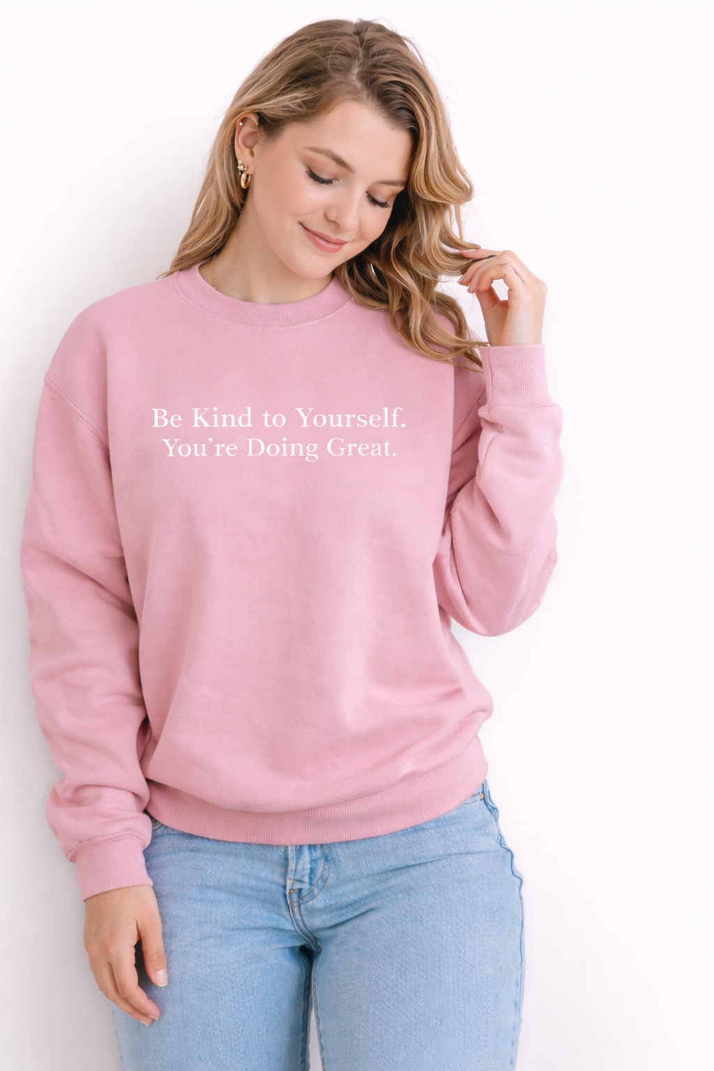This cozy sweatshirt is designed to inspire self-love, grace, and confidence—because you are doing great.